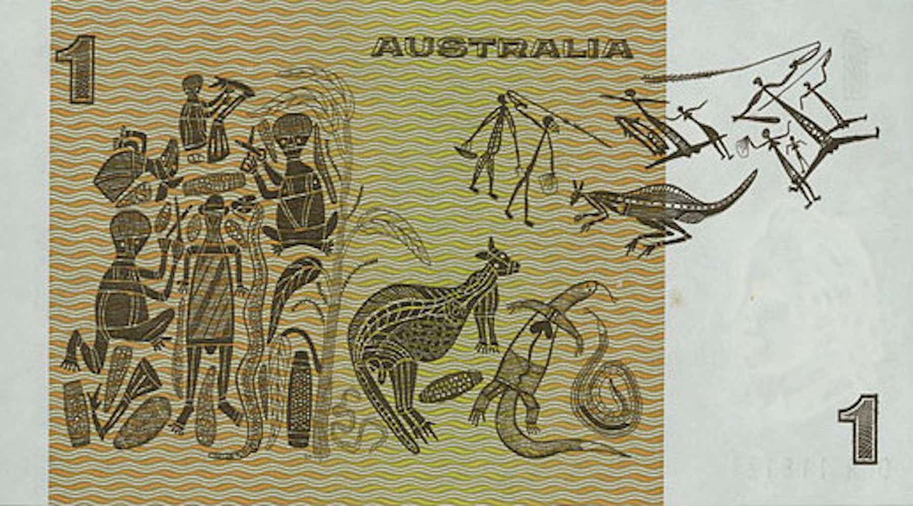 Australia does have a number of numismatic pieces either completely or partly designed by indigenous artists. The one dollar note, produced from 1966 – 1984 featured Indigenous design, based on bark painting by artist David Malangi Daymirringu, a Yolngu man from what is now northeastern Arnhem Land, and others.